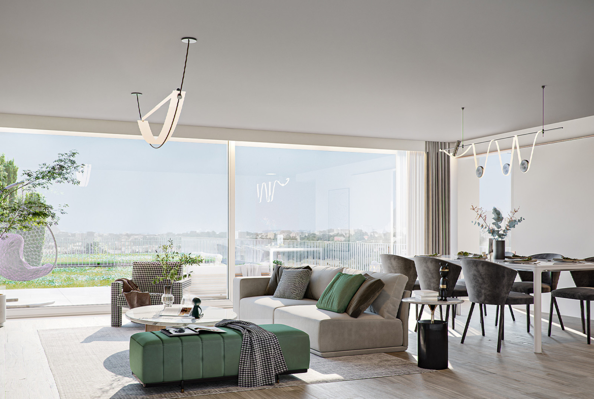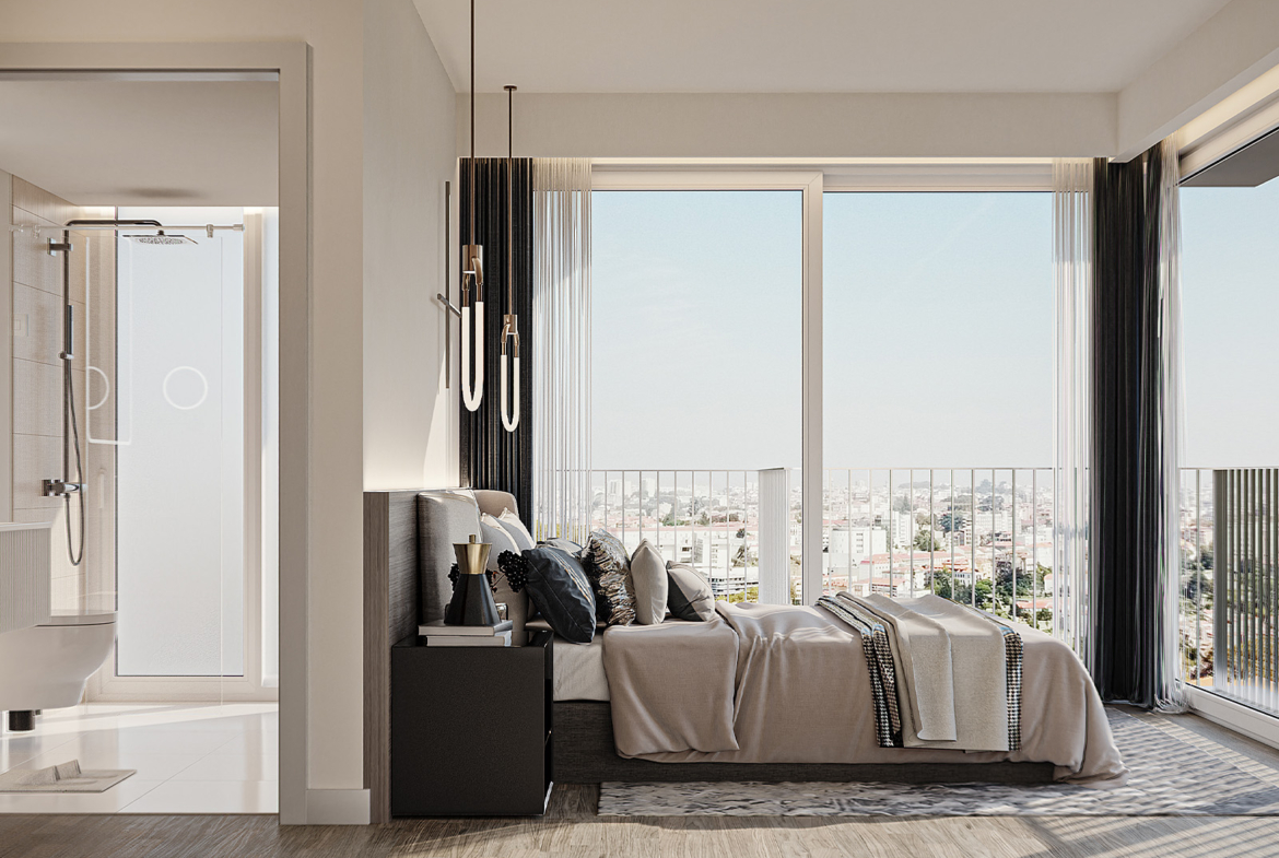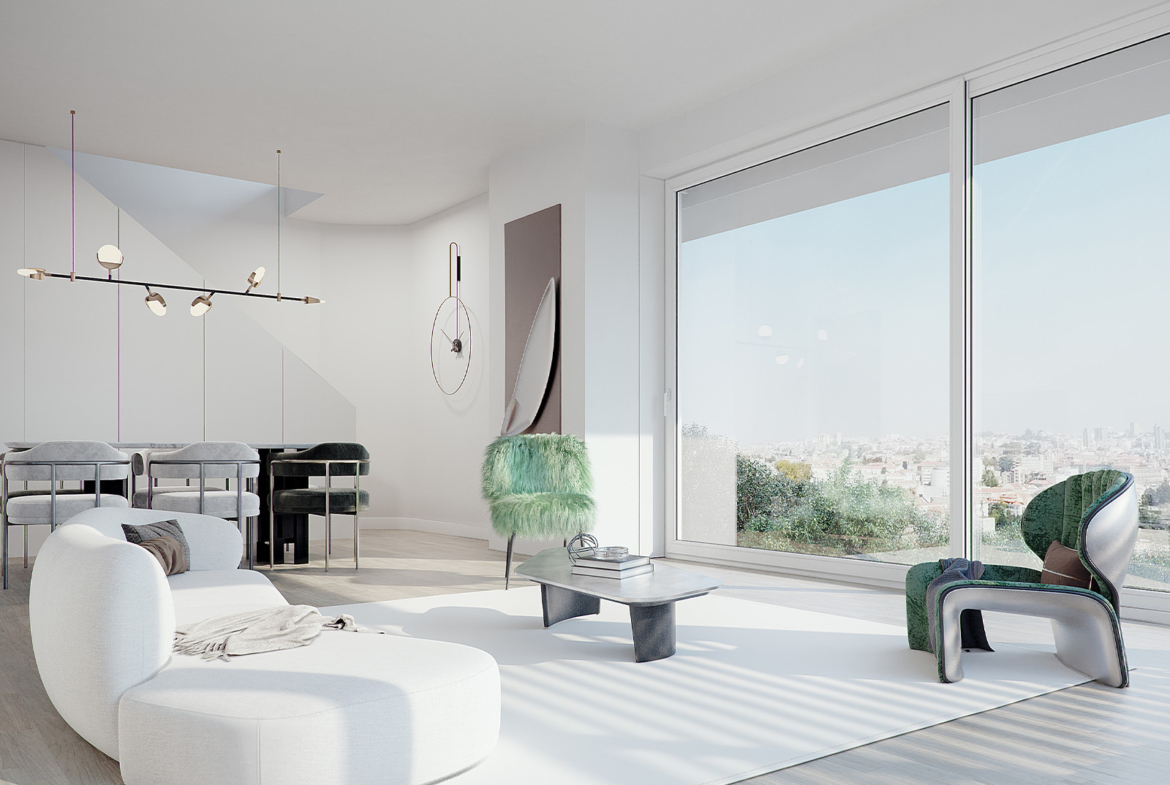 Comprising 61 versatile apartments, Alive Riverside was designed to adapt to modern needs, featuring a variety of 1 to 5-bedroom typologies. With modular and customizable layouts, this project allows residents to reconfigure spaces — for example, transforming a T4 into a spacious T3 — to better suit evolving lifestyles.