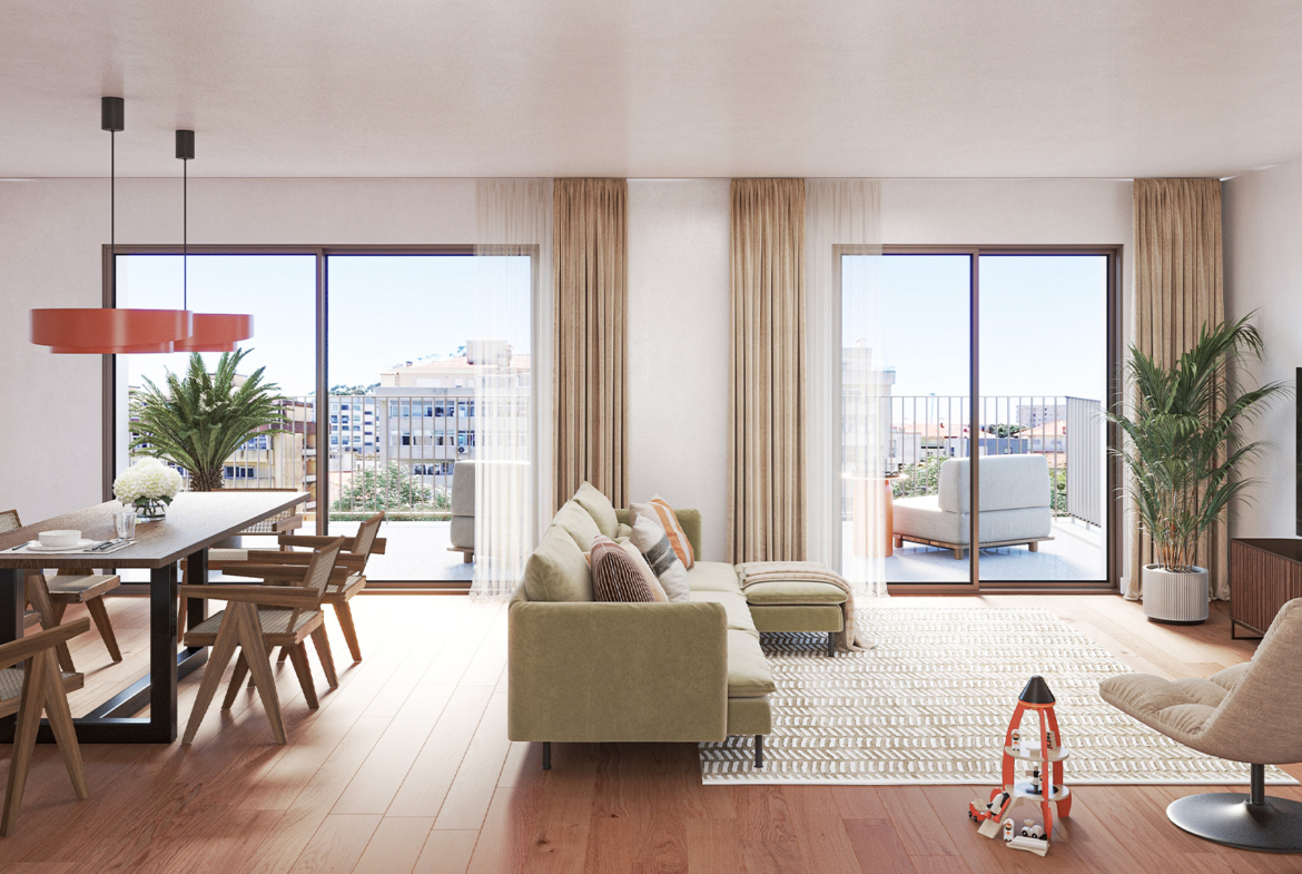 Antas Atrium is one of Portugal’s most ambitious residential projects, redefining modern family living in the dynamic city of Porto. Located in Alameda das Antas, this large-scale, six-phase development features contemporary architecture, smart design, and a lifestyle-first approach. Phase 2 comprises 168 apartments, thoughtfully designed to offer comfort, function, and a seamless connection with the outdoors.