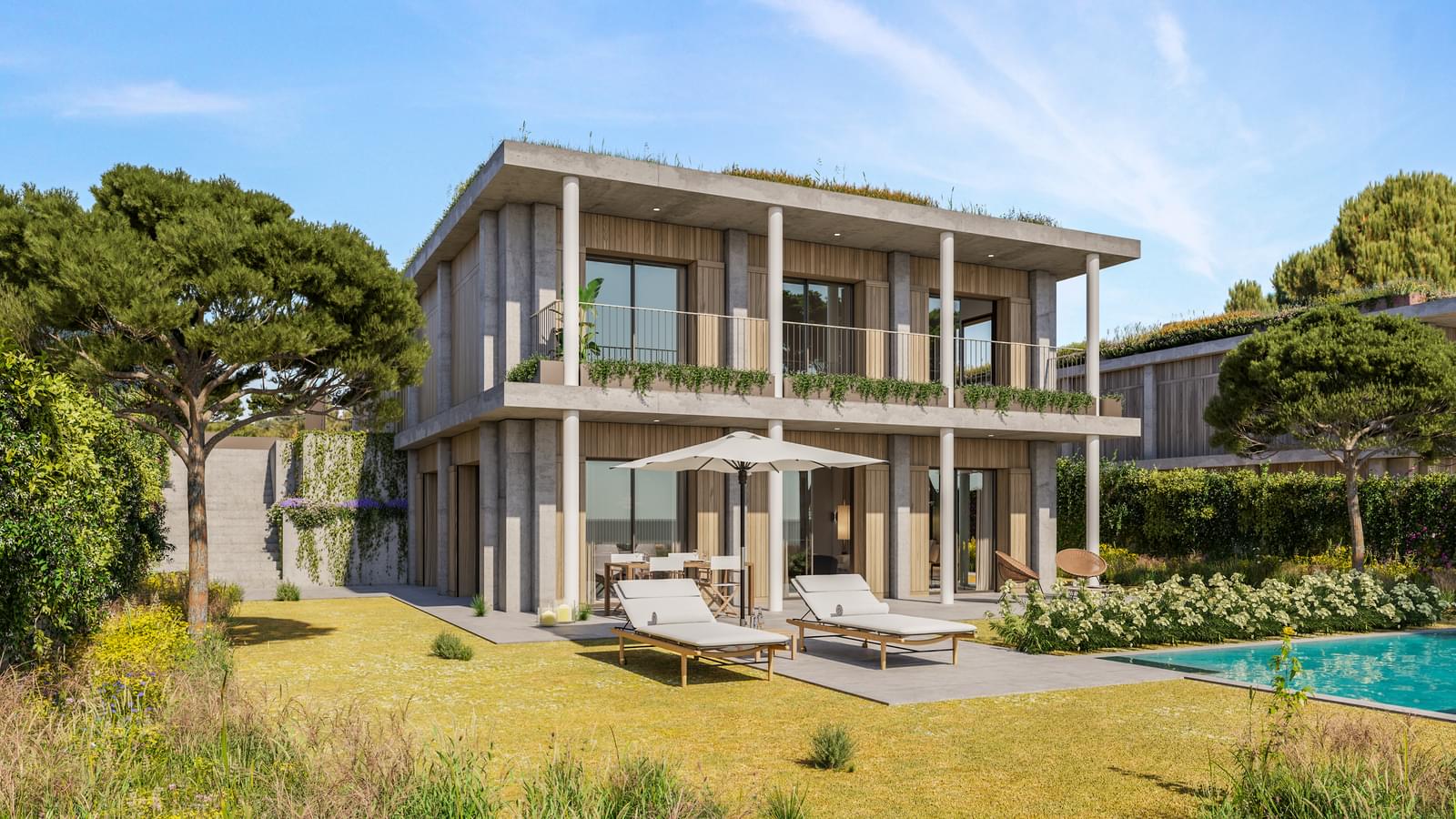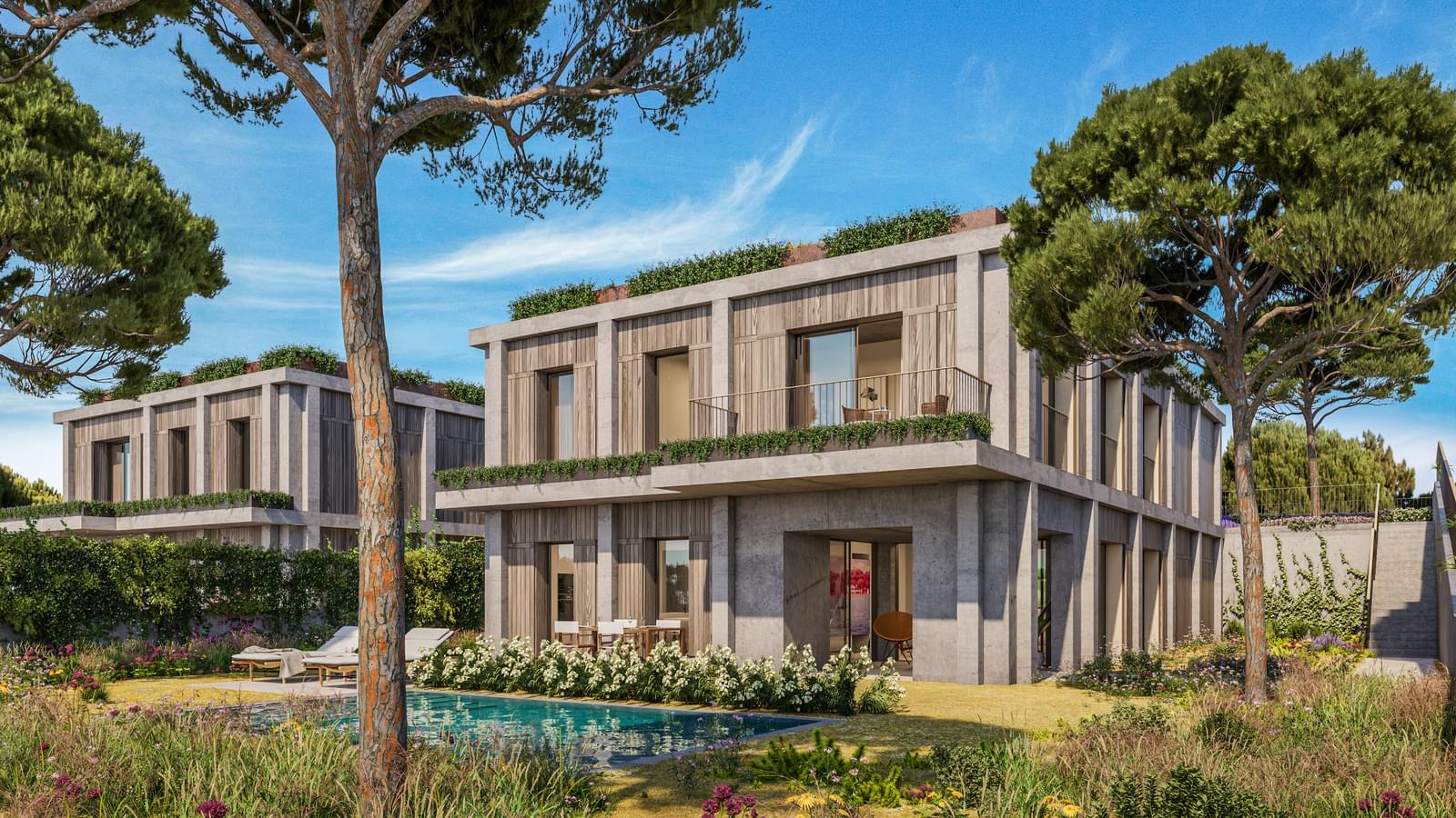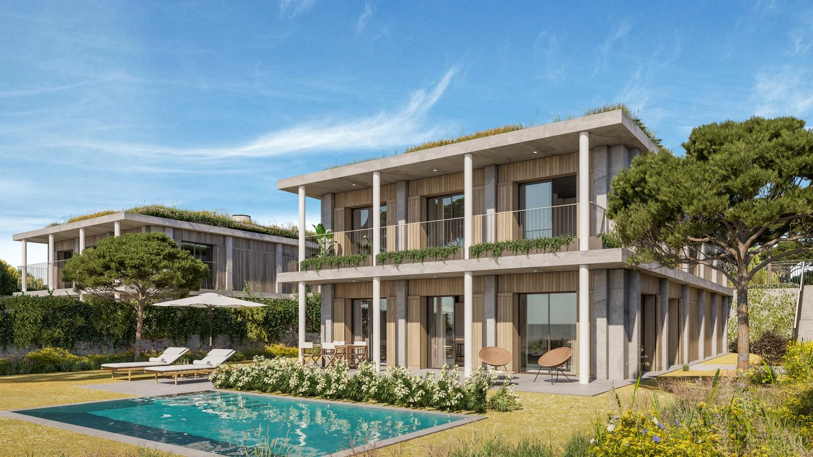 Exclusive luxury villas at Caparica Hills in Costa da Caparica with ocean views, private pools, expansive gardens and resort lifestyle living near Lisbon.