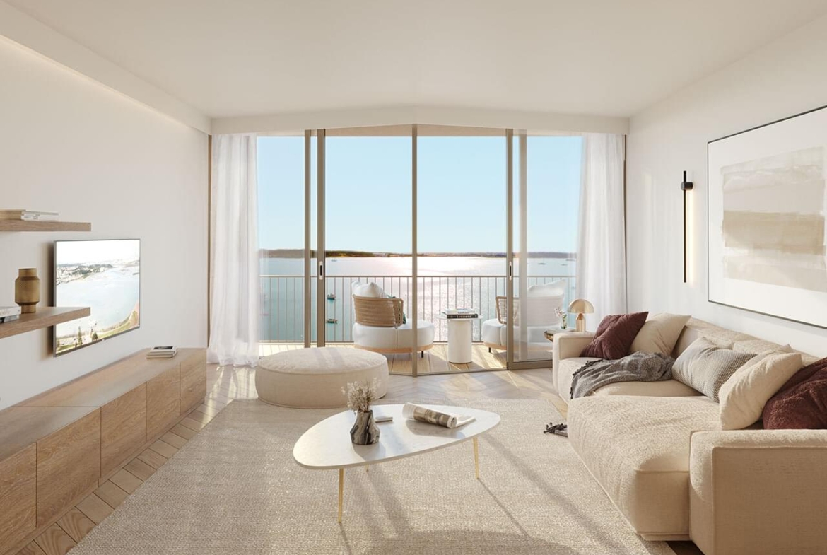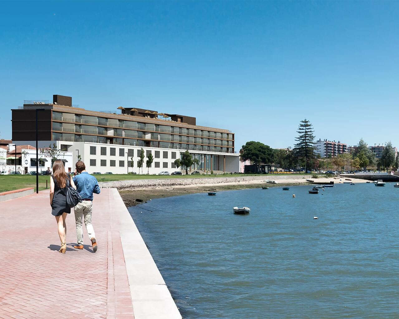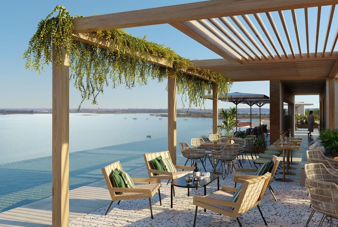Exclusive riverside residences in Seixal Bay with panoramic Tagus views, 4★ hotel amenities, rental income options, modern design and investment potential.