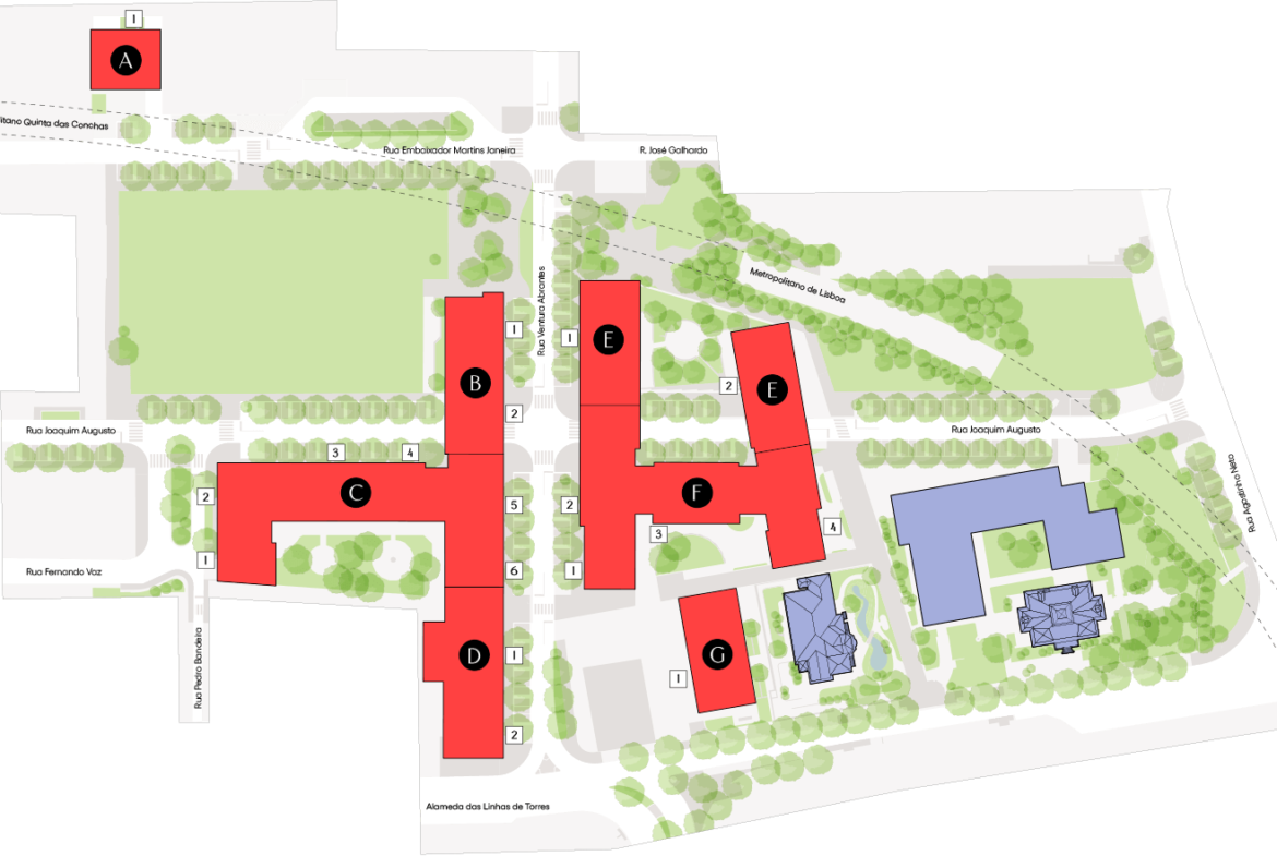 NoLiPa is one of Lisbon’s most ambitious and visionary residential developments, comprising 466 apartments across seven architecturally distinct buildings. Located in Campo Grande, this project offers a perfect blend of urban accessibility and green living, framed by two of the city’s largest parks: Jardim do Campo Grande and Parque da Quinta das Conchas e dos Lilases.
