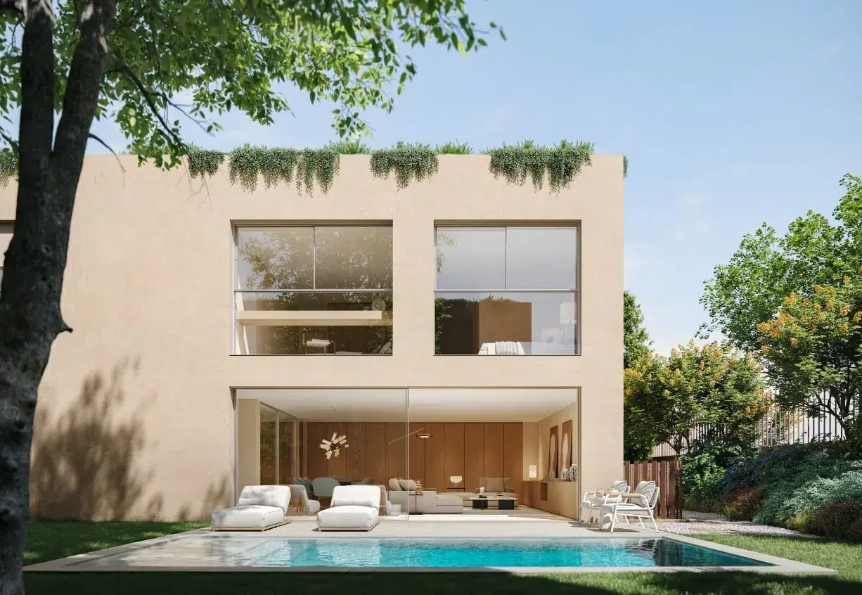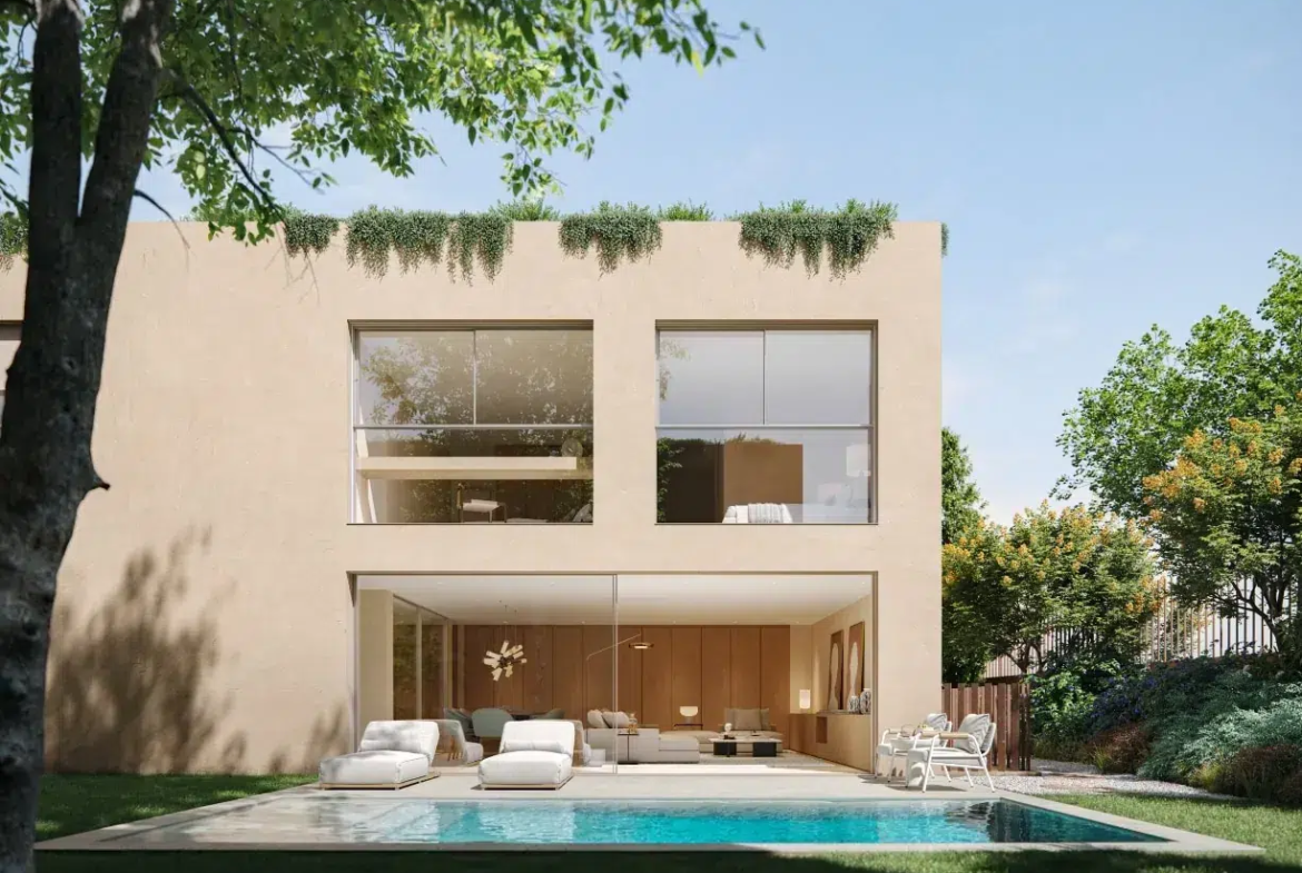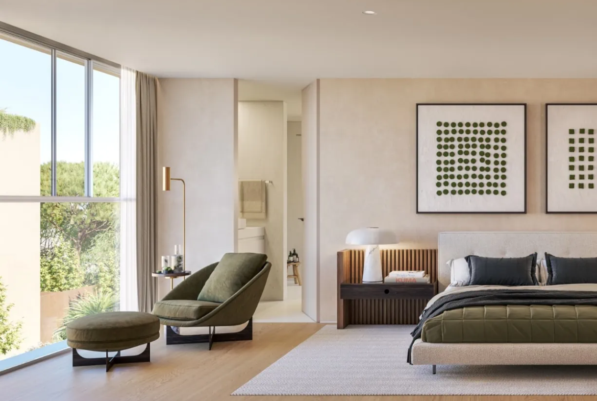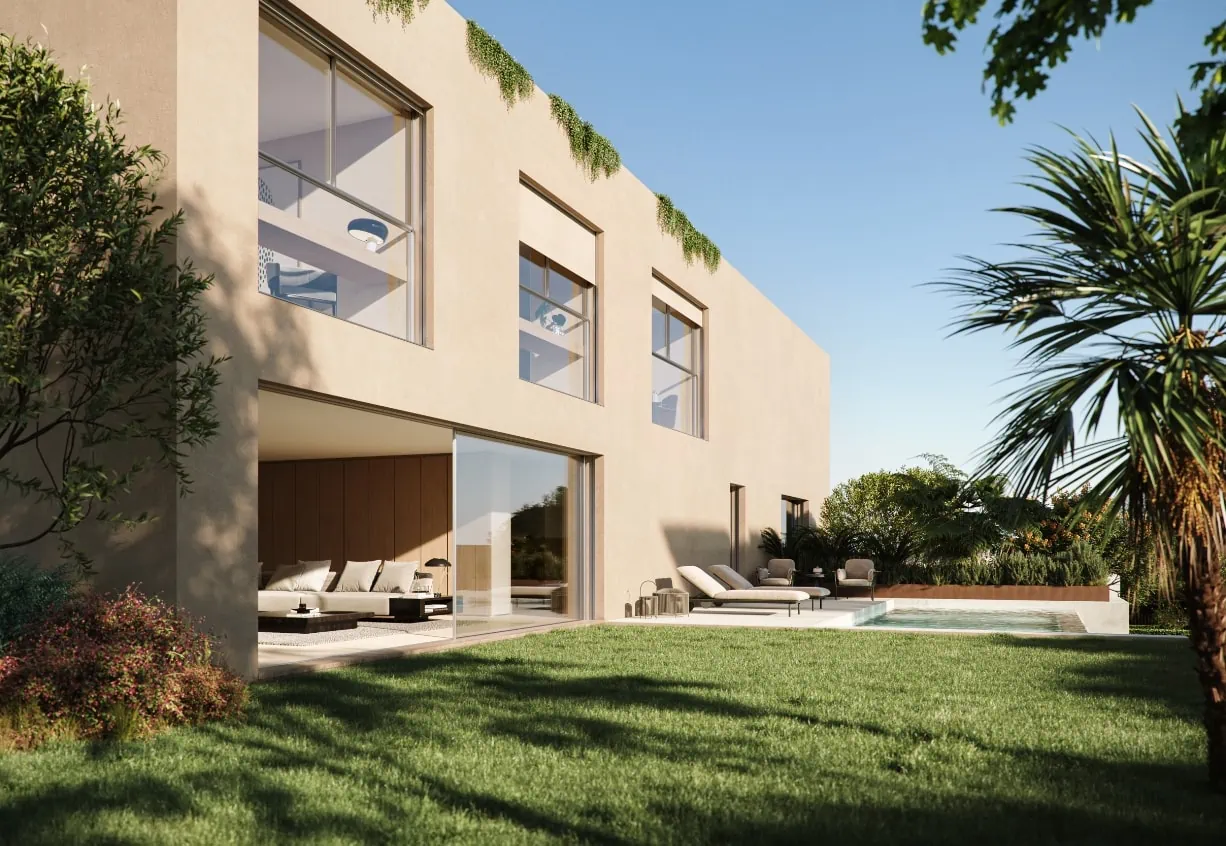 Plátanos is an innovative and exclusive residential development located in Cascais, Portugal, just minutes from Lisbon’s city center. This private condominium comprises 13 independent villas that harmoniously blend nature with sophistication, offering a distinctive and relaxed lifestyle. Each villa is thoughtfully designed to integrate seamlessly into the lush surroundings, featuring materials and landscaped roofs that highlight the vibrant colors of the vegetation.