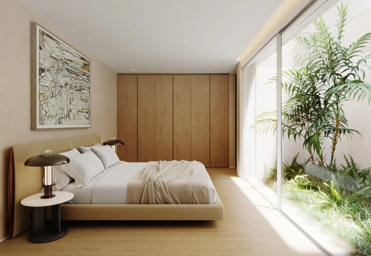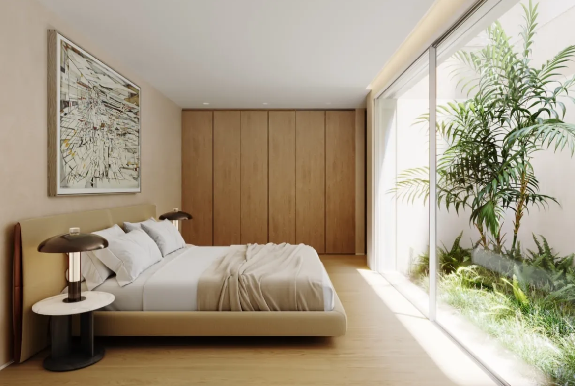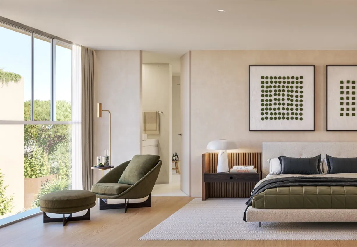 Plátanos is an innovative and exclusive residential development located in Cascais, Portugal, just minutes from Lisbon’s city center. This private condominium comprises 13 independent villas that harmoniously blend nature with sophistication, offering a distinctive and relaxed lifestyle. Each villa is thoughtfully designed to integrate seamlessly into the lush surroundings, featuring materials and landscaped roofs that highlight the vibrant colors of the vegetation.