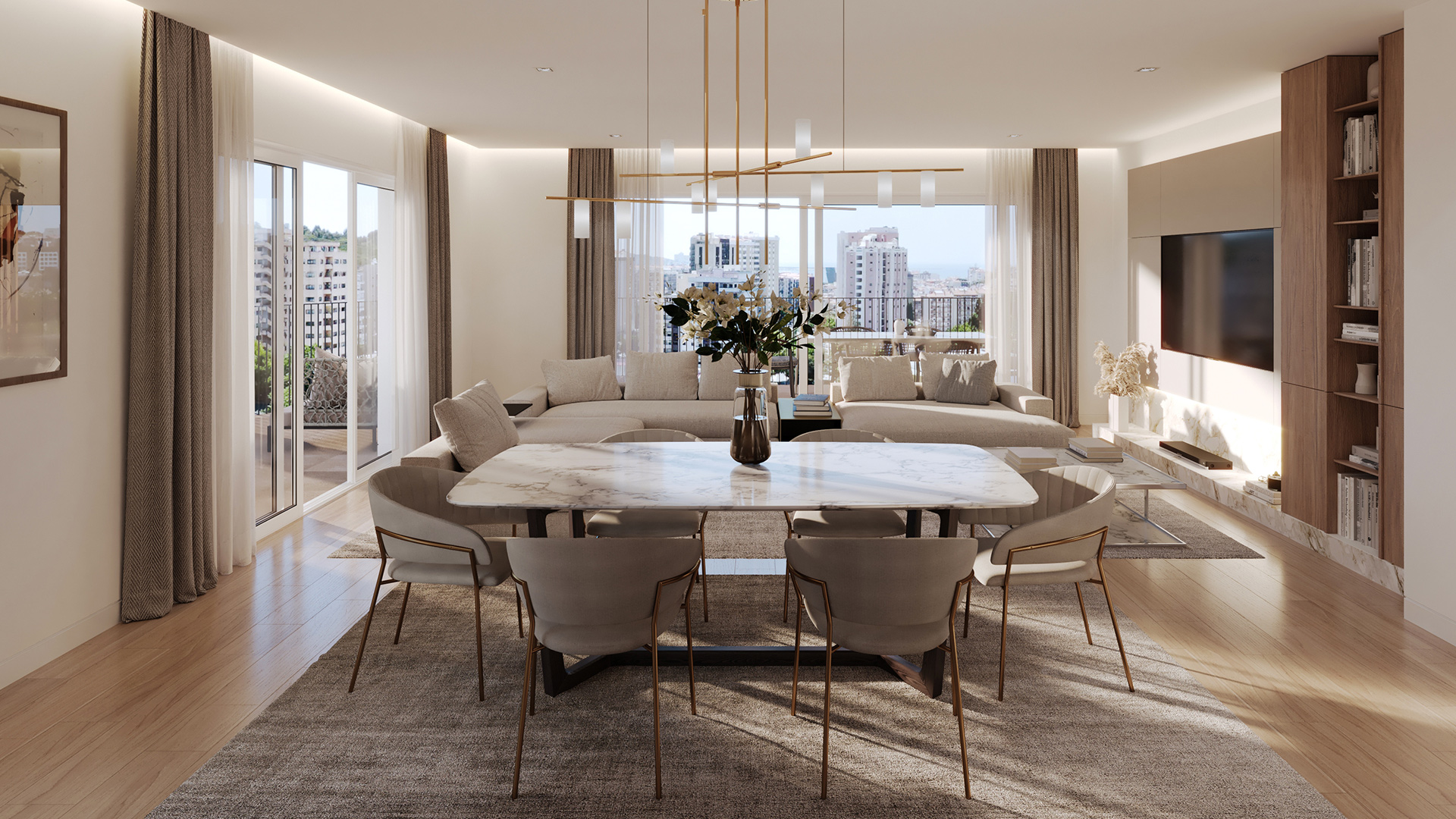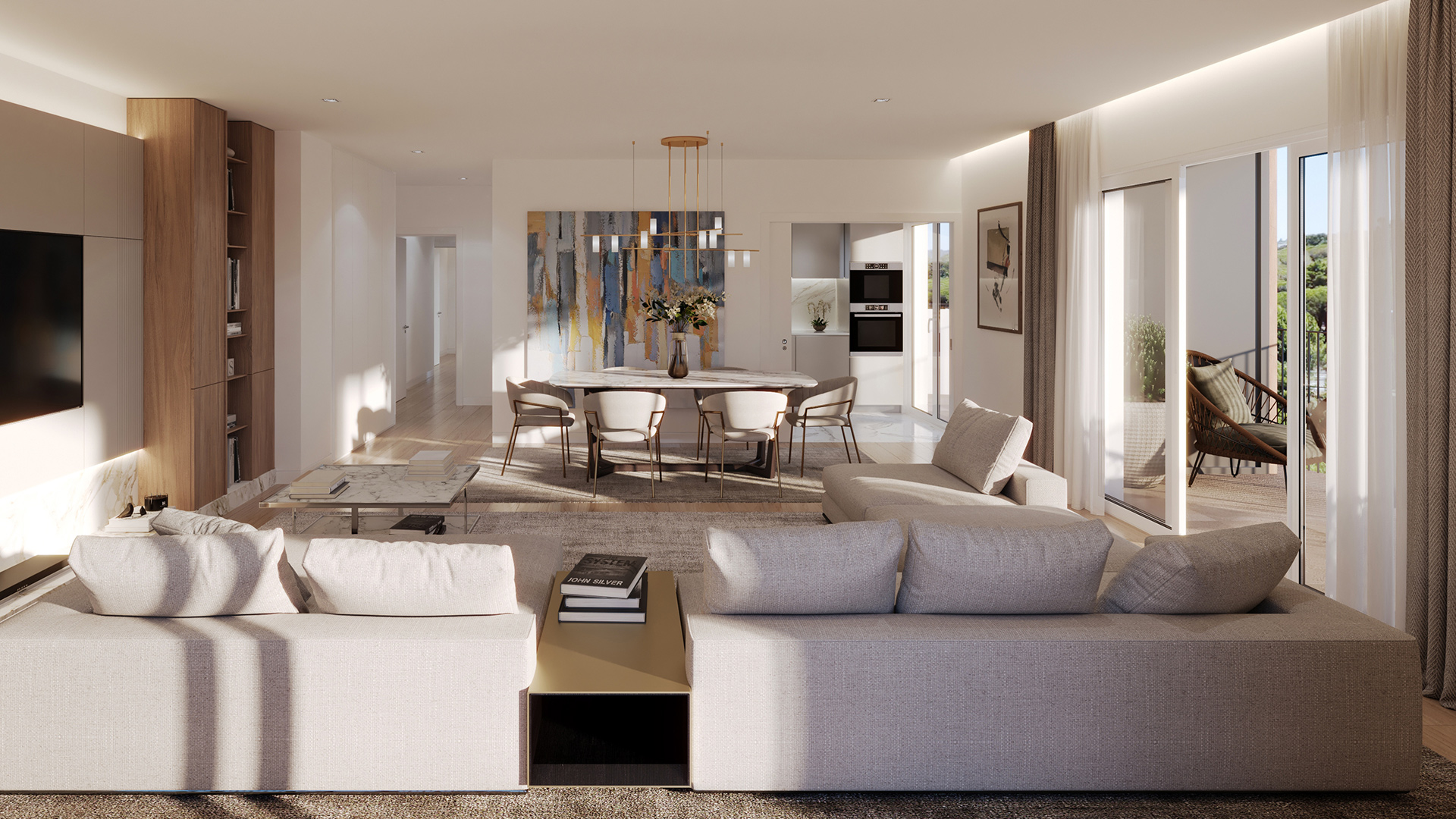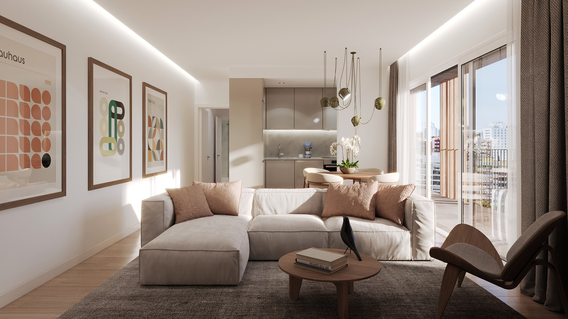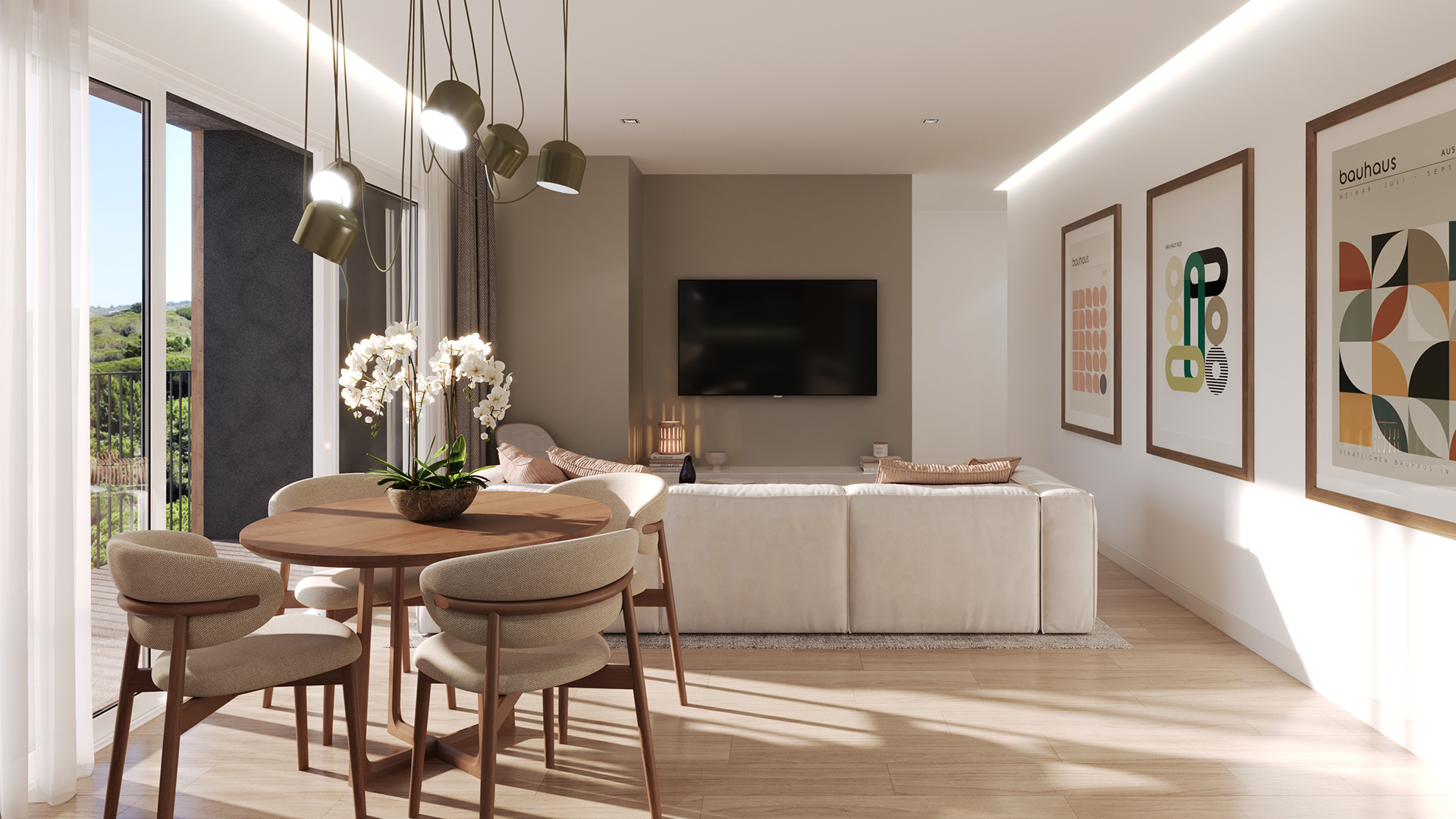 ZUME Flats is a contemporary residential development located in Miraflores, Oeiras, comprising 129 fully equipped apartments spread across three buildings. The apartments range from one to four bedrooms (T1 to T4), with areas between 63 m² and 138 m². Designed with contemporary lines and high-quality finishes, each unit features large balconies that offer expansive views of the Tagus River, Monsanto Park, and Miraflores Urban Park, seamlessly integrating nature into urban living.