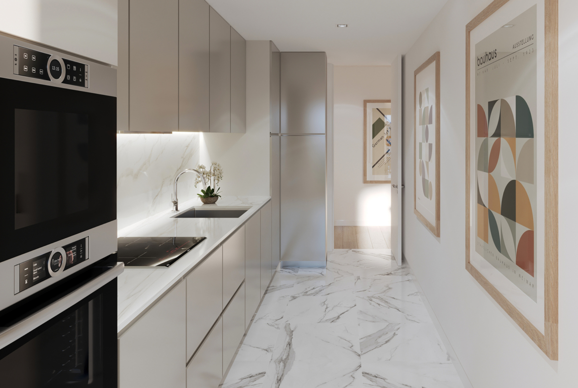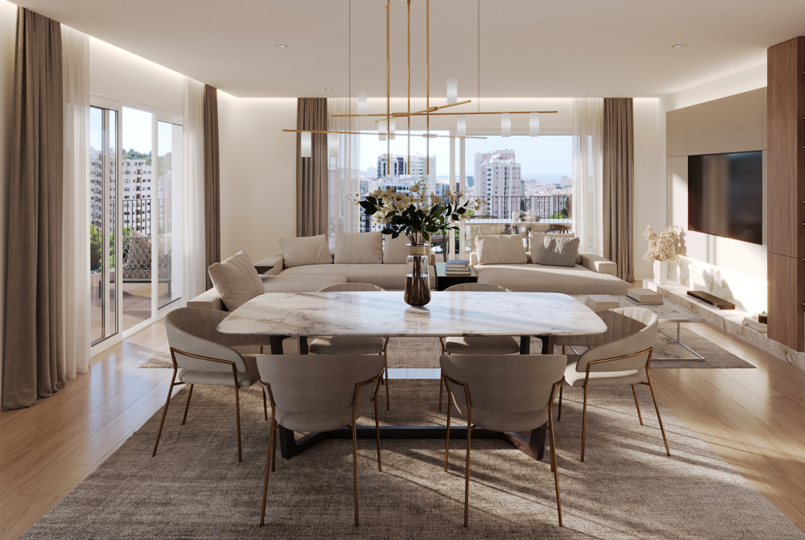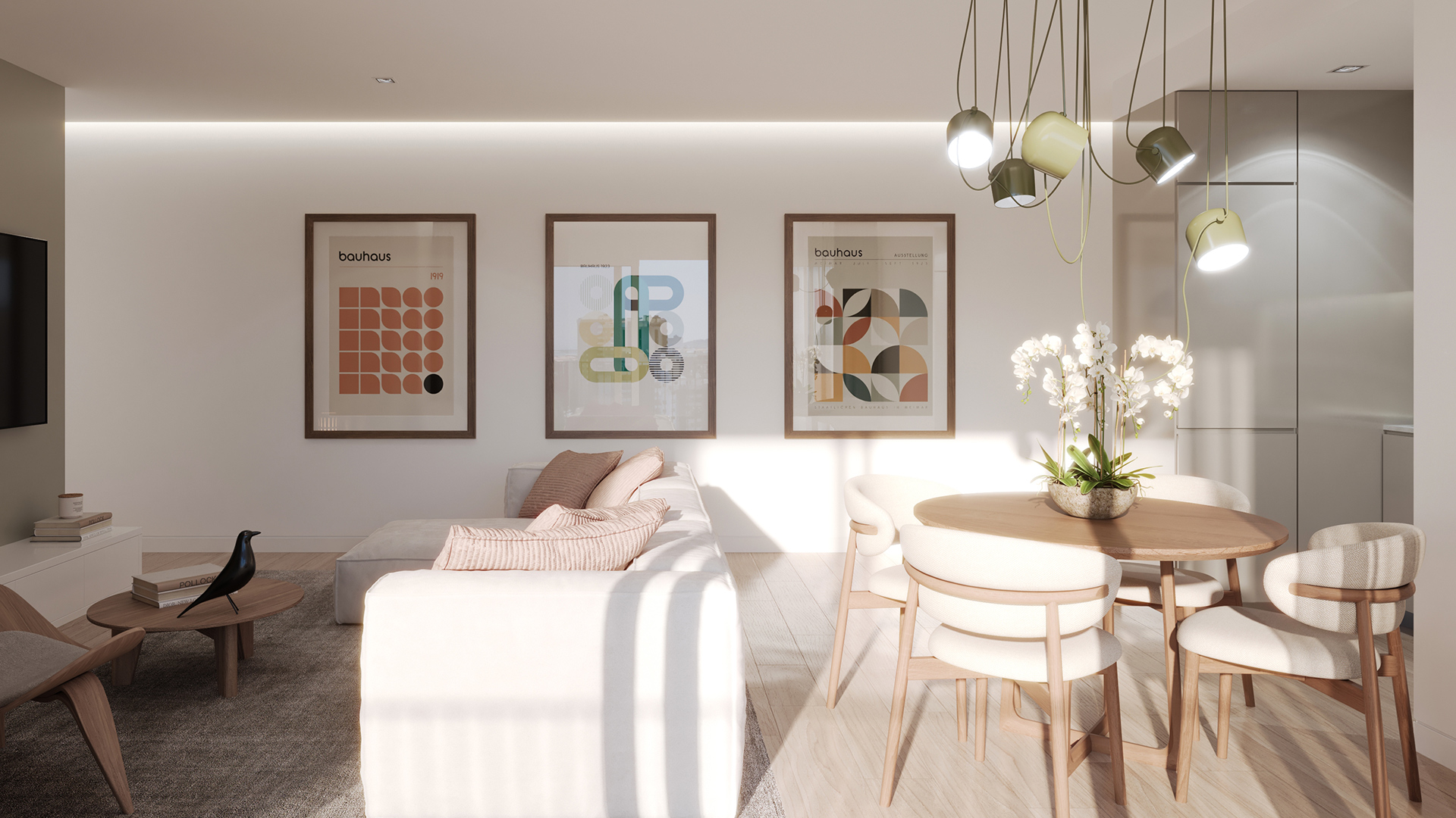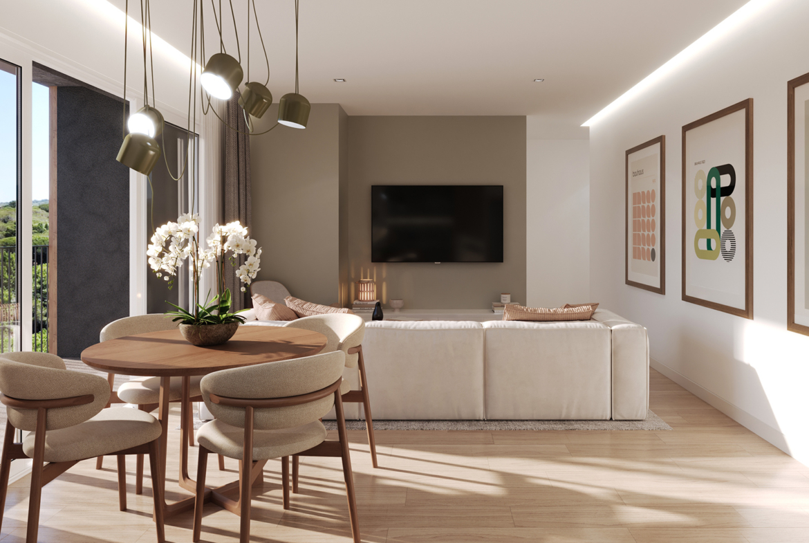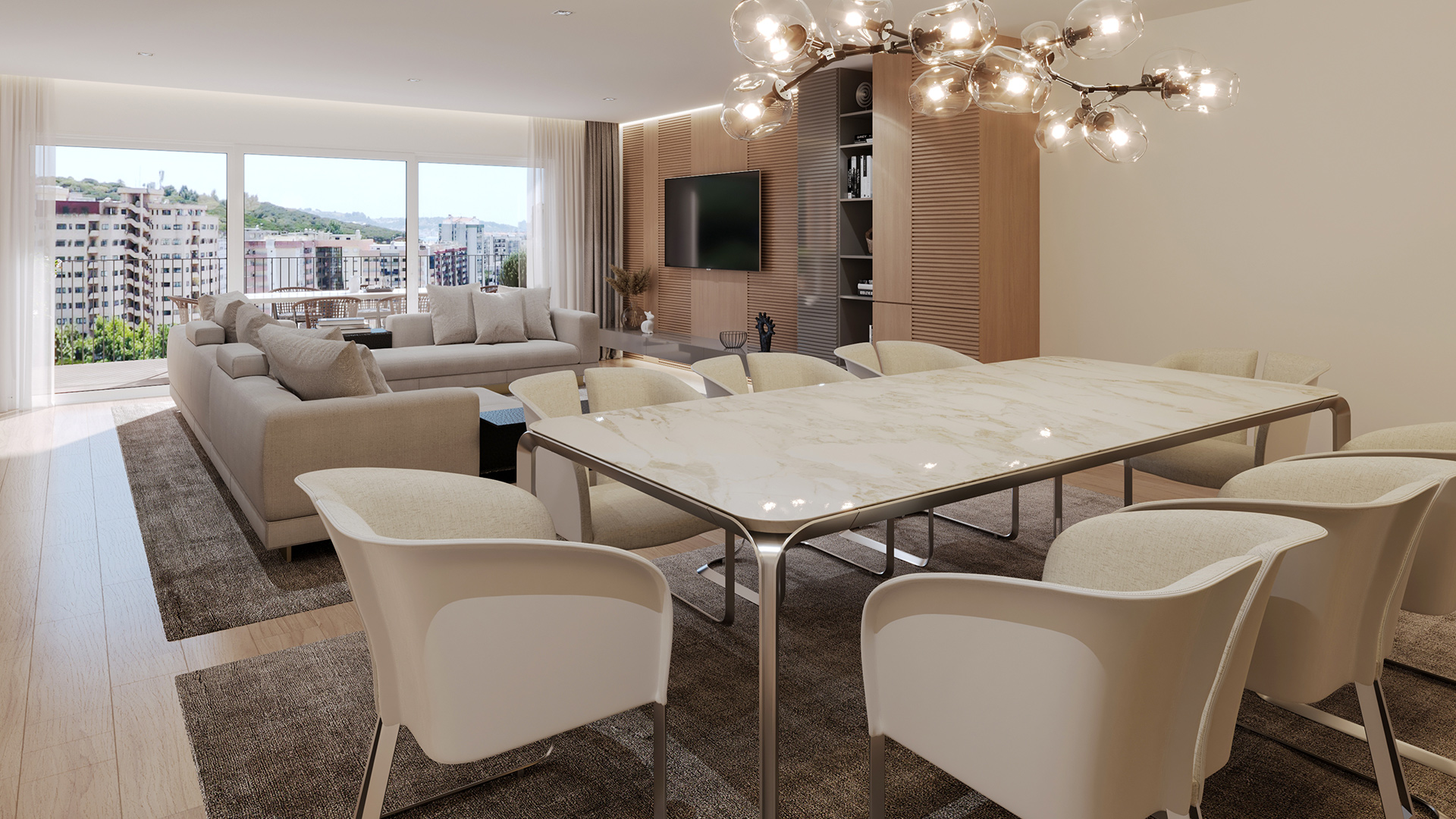ZUME Flats is a contemporary residential development located in Miraflores, Oeiras, comprising 129 fully equipped apartments spread across three buildings. The apartments range from one to four bedrooms (T1 to T4), with areas between 63 m² and 138 m². Designed with contemporary lines and high-quality finishes, each unit features large balconies that offer expansive views of the Tagus River, Monsanto Park, and Miraflores Urban Park, seamlessly integrating nature into urban living.